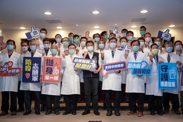 因應新冠肺炎疫情,台中市醫界自主號召,聯合成立「防疫志願軍大隊」,與市府通力合作對抗疫情,截至目前為止,已有60多位診所醫師響應參與。衛生局長曾梓展表示,感謝所有醫師努力付出,基層診所站在第一線為台中市民的健康把關,扮演重要的防疫角色。