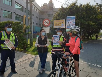 因應新冠肺炎疫情,觀旅局同仁除會同警察局於現場取締違規案件外,也配合中央防疫措施,於潭雅神綠園道周邊人潮聚集等重要節點向業者及遊客宣導勤洗手、配戴口罩、保持室內1.5公尺及室外1公尺以上之社交距離,共同落實全民防疫工作。(4/25*6)*觀光旅遊局