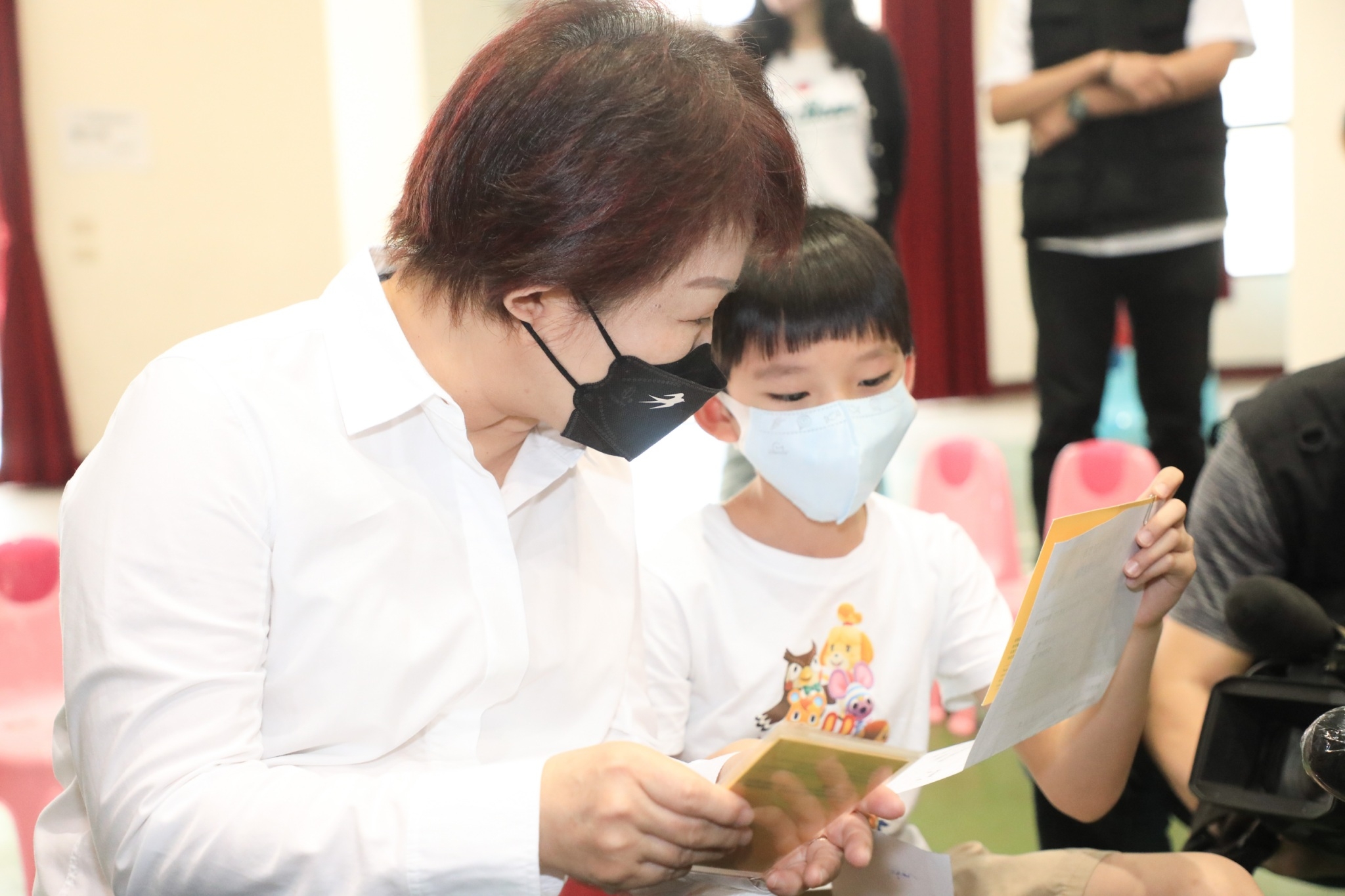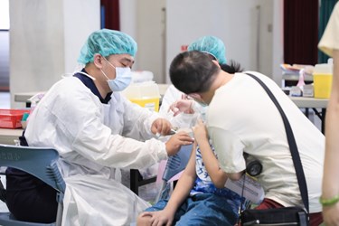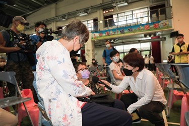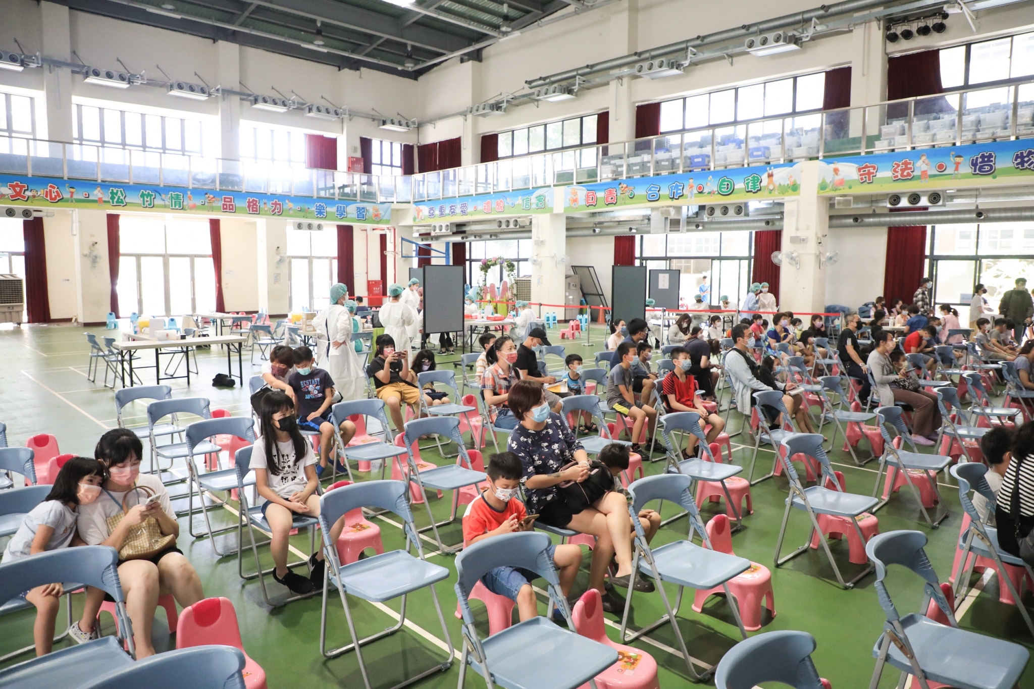 「防疫不休息!」盧市長說,6至11歲學童疫苗第二劑接種調整為兩劑間隔4到8週,台中之前施打莫德納疫苗的小朋友已可接種第二劑,市府與學校合作利用週末家長比較有時間的時候,在全市開設26個兒童疫苗快打站,現場有冷氣、播放卡通及工作人員提供服務。