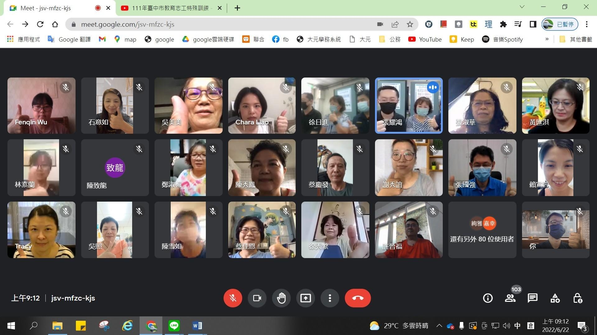 台中市學校眾多,校園事務也多,全市目前有2萬4,310名教育志工協助校園事務,讓校園運作更順利。為提升志工的專業能力,教育局每年辦理教育志工培訓,今年受疫情影響,第二場志工訓練昨(22)日採線上教學辦理,擔任講師的大元國小教育志工陳玉艷隊長說,參加志工隊22年來,最大收獲是拓展人際關係,透過與志工夥伴們互動,讓她的待人處事更開闊圓融。