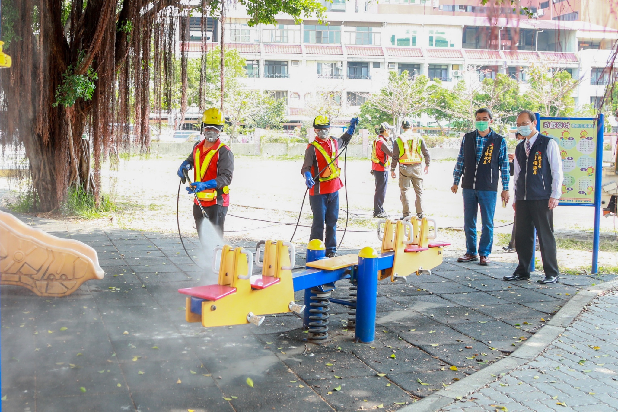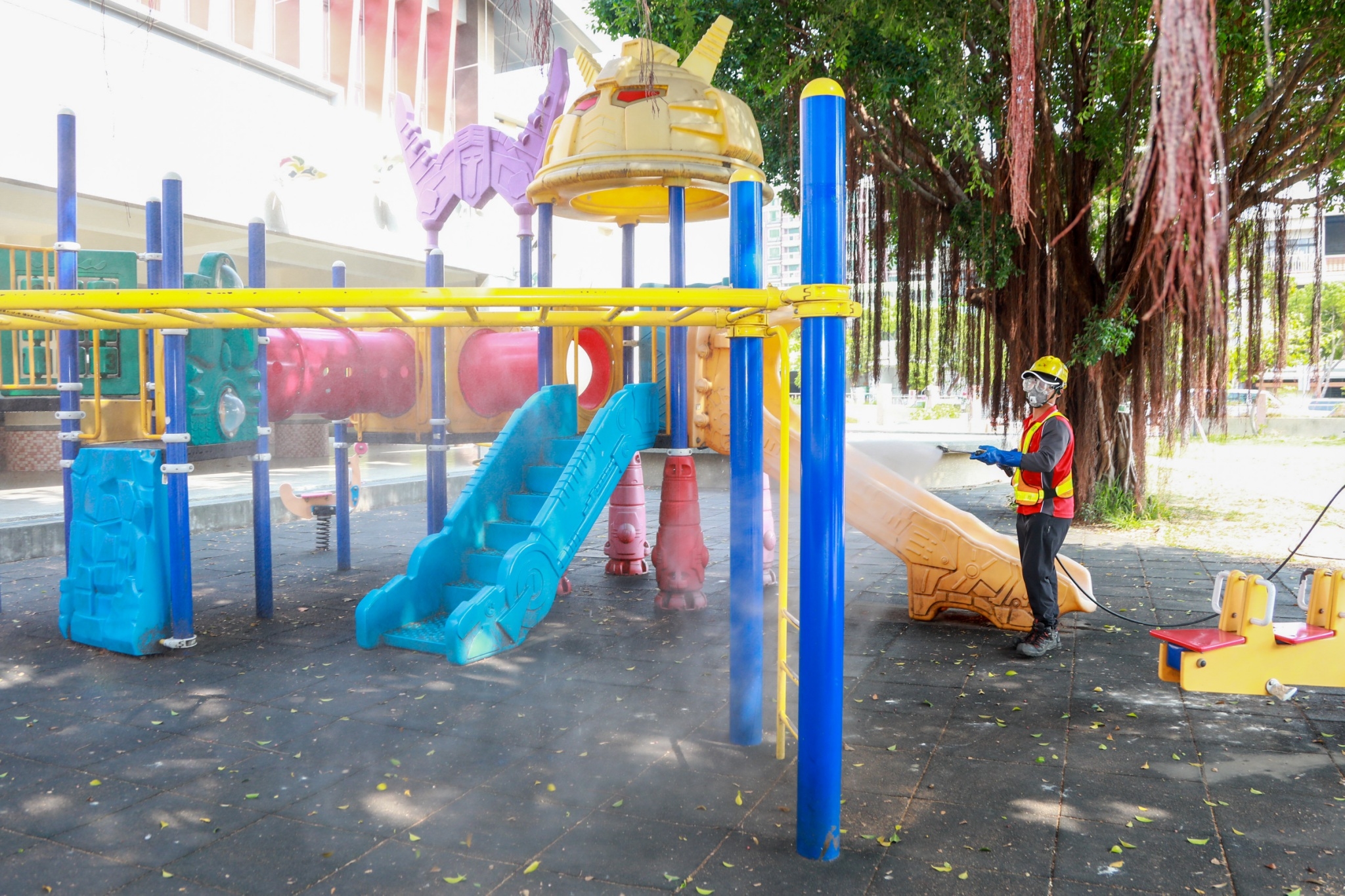 環保局消毒人員為孩童最常接觸的遊具消毒