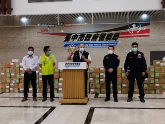 新冠肺炎疫情升溫,為降低第一線與民眾接觸的警察同仁風險,企業家宋俊明董事長透過台中市議員張耀中牽線,致贈6735副護目鏡予台中市政府警察局,讓每位員警在維護治安及交安的工作時,也能兼顧自身防疫。今(27)日上午在台中市副市長陳子敬見證下,由警察局長楊源明代表受贈。
