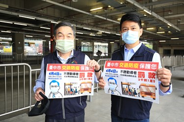 新冠肺炎疫情嚴峻,中央規定民眾搭乘大眾運輸應戴口罩,勸導不聽可開罰3000元至1萬5000元。台中市政府積極配合中央政策,副市長黃國榮今(4)日率隊至台中轉運中心視察宣導,並了解清明連假交通疏運及各項防疫措施;黃副市長表示,今日觀察民眾多有戴口罩乘車,因應中央口罩實名制4月9日起升級,目前台中市先採柔性勸導,勸導不聽才會開罰,盼民眾配合共同防範疫情。