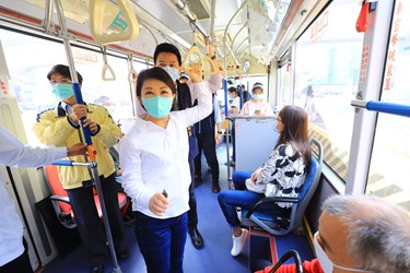 盧市長親搭公車視察 民眾戴口罩配合良好