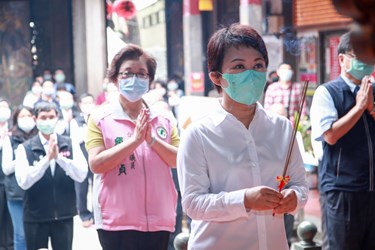 盧市長說,她今日到樂成宮有兩個目的,除了誠心向媽祖上香祈求,期盼旱溪媽發揮神恩,保佑疫情趕快結束,也感謝樂成宮將原訂支應遶境活動的500萬元經費,捐給市府作為防疫基金。