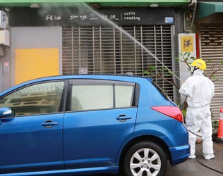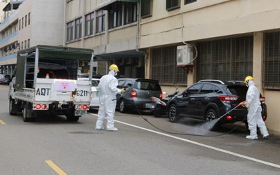 市府今日下午1時前往磐石艦確診案新增足跡執行消毒作業,新聞局長黃國瑋、經發局長張峯源、衛生局副局長陳南松、市議員楊典忠均到場監督。新聞局黃局長說明,新冠肺炎案401曾去過的清水咖啡店,業者發現該個案4月16日下午2時30分至3時40分在該店喝咖啡,已自主進行消毒,並立即主動與市府連線提供資訊。