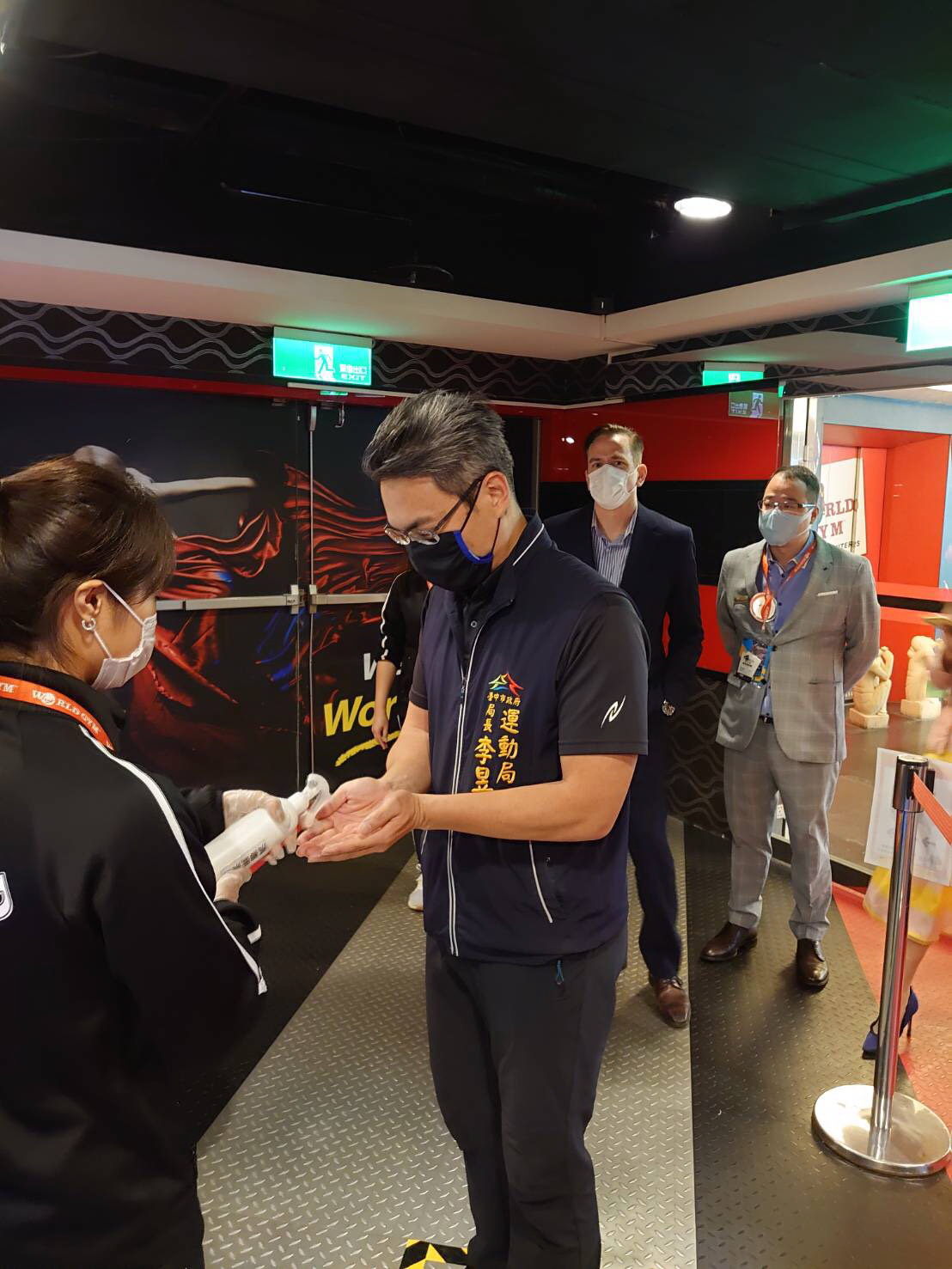 李局長說明,教育部體育署近日發布「公共運動設施(含國民運動中心)及民間運動場館因應新冠肺炎防疫注意指引」,規範全台無論公、私立運動場所皆需落實防疫措施,如單一出入口、實名登記制、工作人員(含教練)配戴口罩、顧客量測體(額)溫、消毒雙手、維持社交安全距離等,同時每2小時也由專責人員進行場館及器材消毒等,確保各運動場所落實防疫。