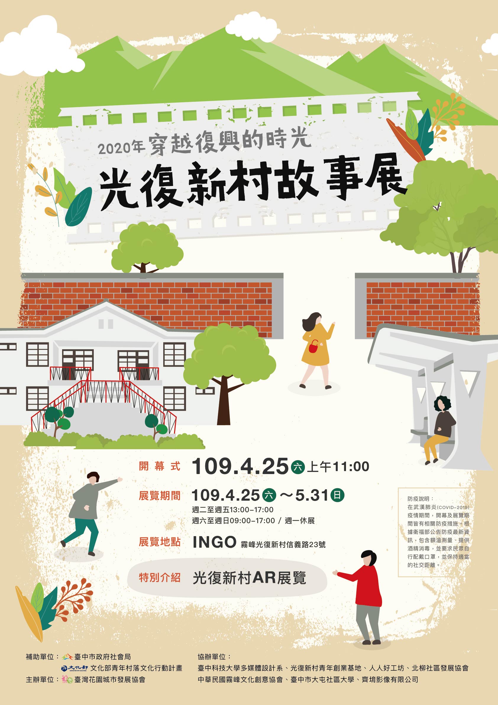 台中市政府社會局補助台灣花園城市發展協會辦理「穿越復興的時代:光復新村故事展」,即(25)日起至5月31日在光復新村INGO中心(光復新村信義路23號)登場,展出光復新村的歷史緣由、早期生活風貌、文化保存歷程、民間活化構想等,還有台中科技大學教師吳彥良結合科技與文資,設計AR呈現光復新村早期生活風貌,內容精彩豐富,邀請民眾前往回顧兒時記憶或了解阿公阿嬤年代的故事。