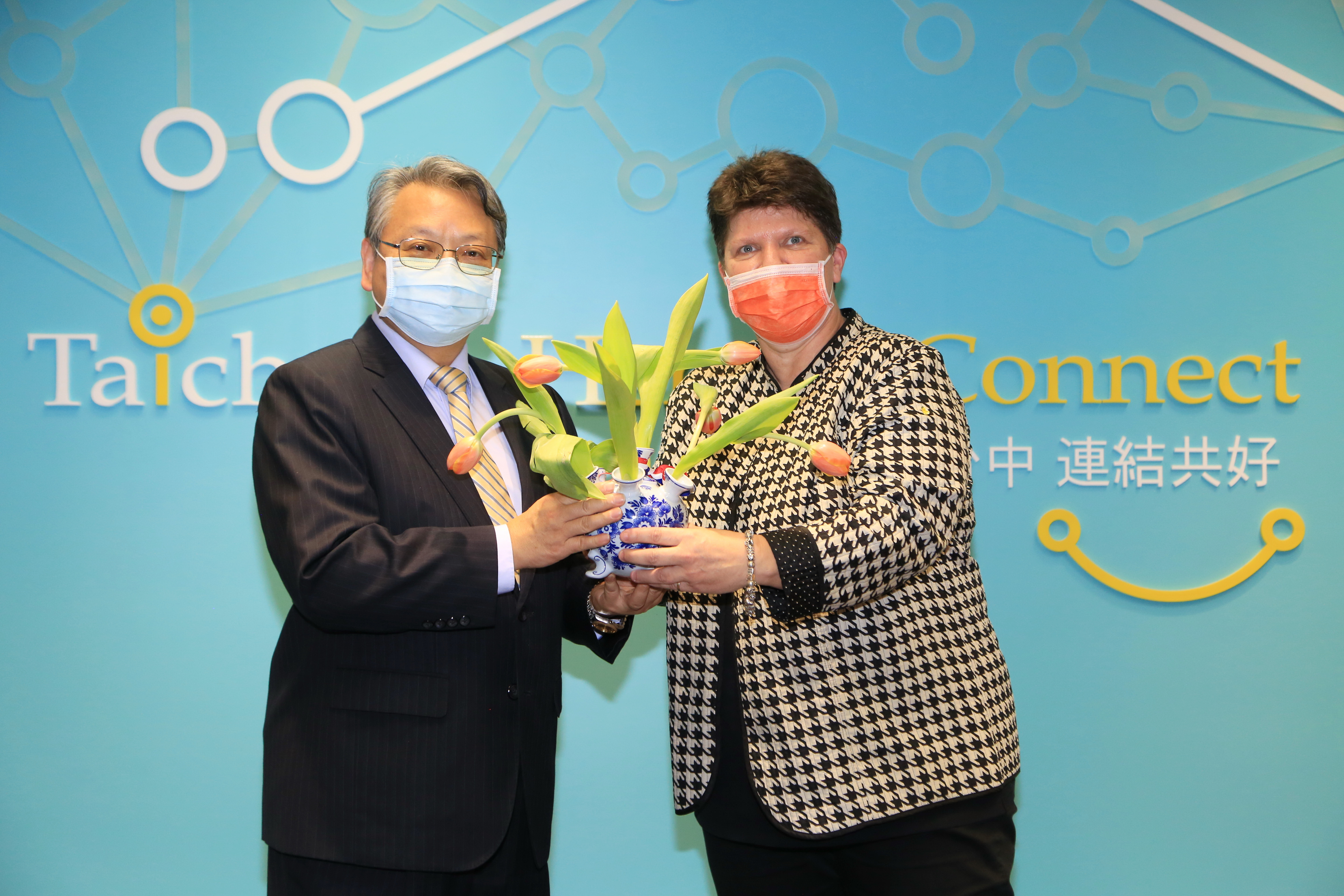 荷蘭代表處副代表貝莉莎表示,感謝台灣政府在急難時,捐贈口罩給荷蘭第一線醫護人員,台中與荷蘭有特殊的「花漾情誼」,無論是去年剛落幕的2018台中花博,或是每年在后里舉辦的百合節,都能看到來自荷蘭的花卉種球,因此以荷蘭國花鬱金香表達謝意。