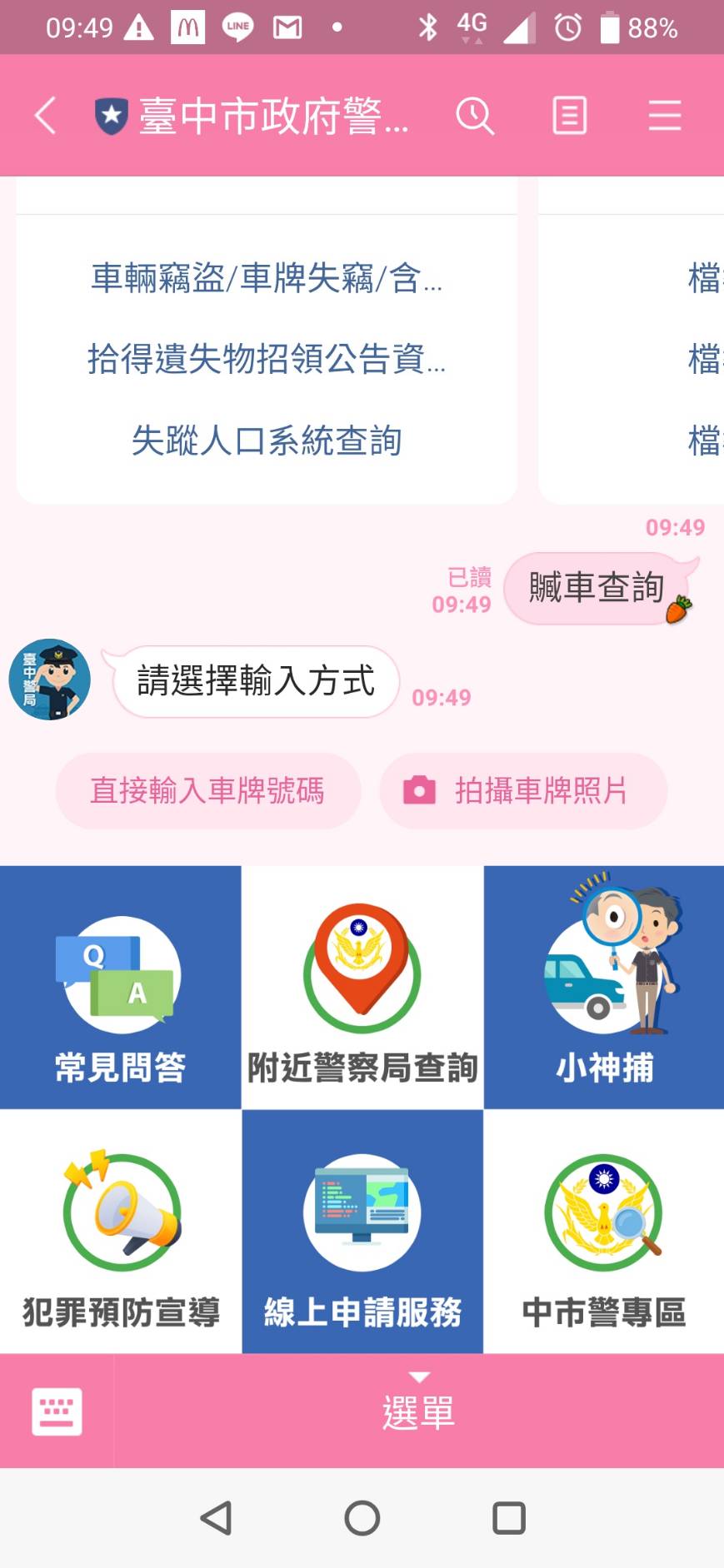 查贜車、防詐騙、找警察 中市警察局LINE一指搞定