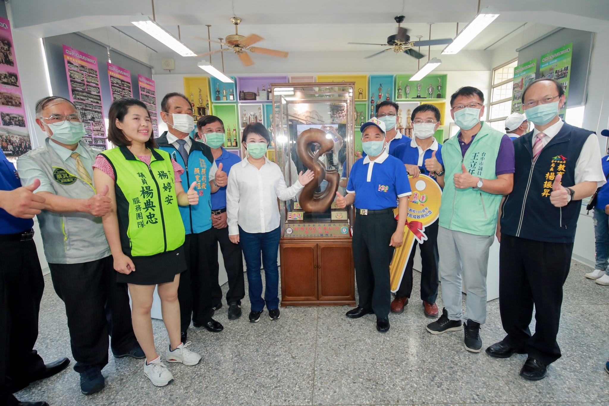 台中市清水區高美國小慶祝創校100週年,舉辦包括校慶電影院、學生才藝表演、師生藝文展等一系列校慶活動,今(5)日市長盧秀燕特別出席為校史館(時光迴廊、師生藝文展)揭牌,並與傑出校友一同切下生日蛋糕,祝學校100歲生日快樂!
