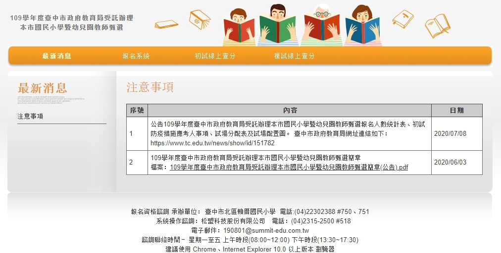 教育局說明,相關考試時間與地點、防疫措施與表件等資訊,可至教育局官網或「109學年度臺中市政府教育局受託辦理本市國民小學暨幼兒園教師甄選網站」(https://teacher109.twrecruit.com.tw/tcb)查詢,請考生密切留意與配合。(7/11*6)*教育局