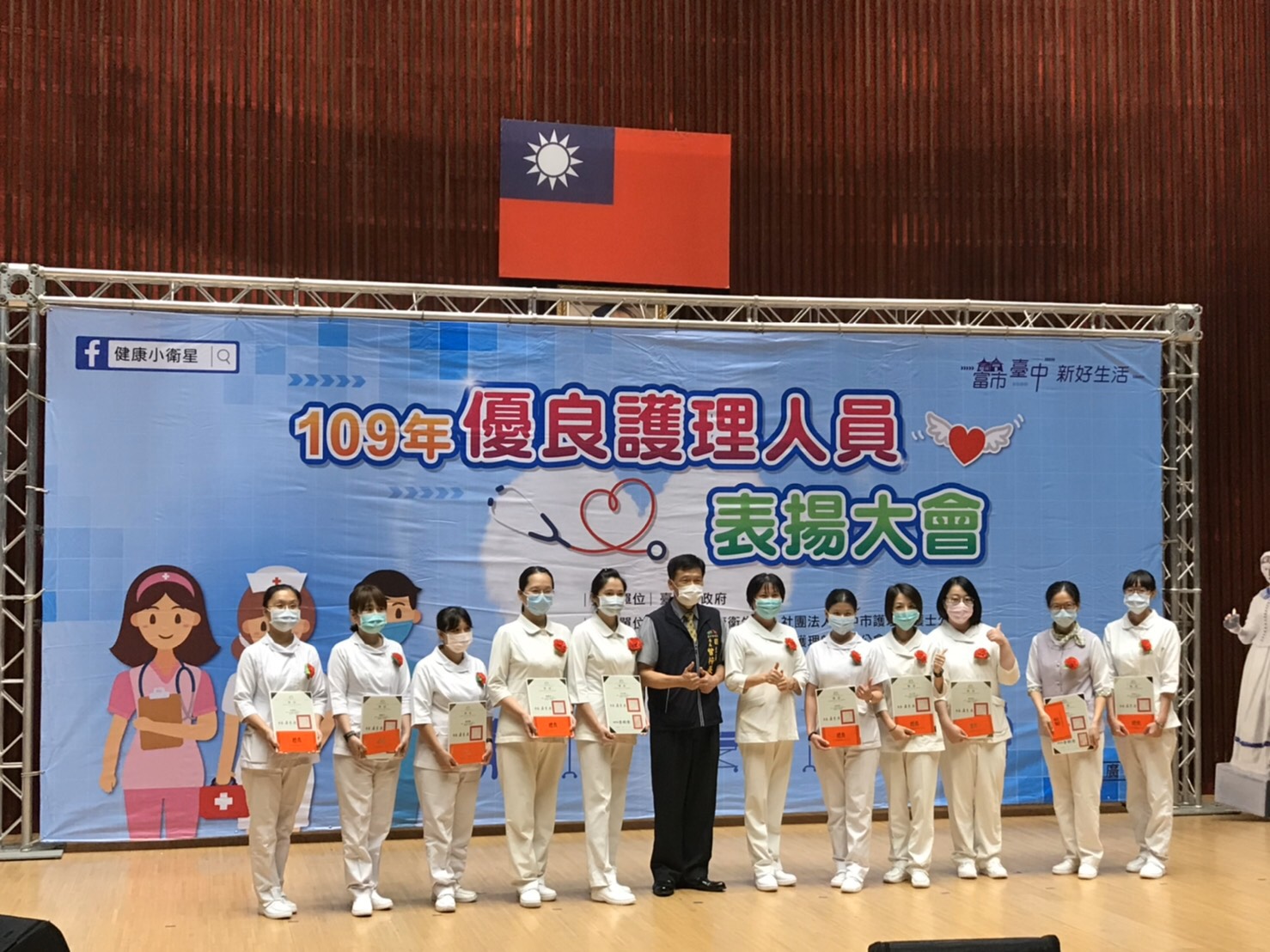 曾局長表示,每年原訂5月護師節舉辦的優良護理人員表揚活動,今年因新冠肺炎疫情延至10月辦理,在全球疫情嚴峻時,台中市執業護理師堅守崗位,在醫療衛生、公共衛生、學校衛生及長期照顧等各個領域,不辭辛勞照護病患,令人感佩。