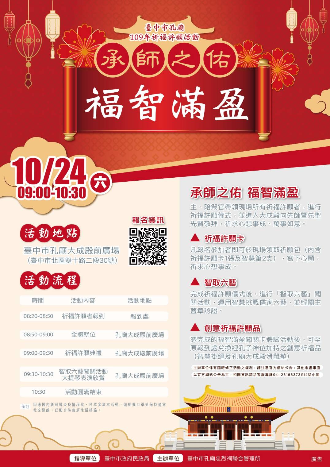 台中市孔廟今年第二場次祈福許願活動「承師之佑、福智滿盈」