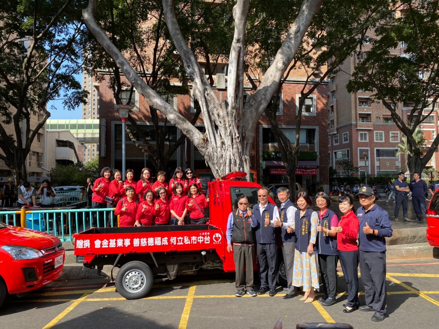 財團法人何成福德社會福利慈善事業基金會熱心公益,繼前年捐贈台中市政府消防局總額200萬元的警備車輛及器材,今年再捐助約75萬元,購買1輛消防警備車、1具消毒燈、4座防疫紫外線消毒櫃,感謝消防弟兄在疫情之際,第一線執行居家隔離患者載送任務。消防局長曾進財表示,感謝基金會支持消防工作,設備將提供黎明分隊執行救災救護,守護市民安全。