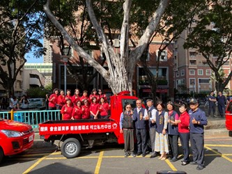 消防設備捐贈儀式今(5)日於何成里福德祠廣場前舉辦,由財團法人何成福德社會福利慈善事業基金會董事長何學金代為捐贈,曾局長回贈感謝狀。消防局表示,何成里福德祠位於西屯區何成里,是當地最早的土地公廟與信仰中心,都市發展導致里民人數增長,長年累積樂捐款項,為讓里民愛心散佈到社會角落,廟方民國97年成立基金會,長年推展公益活動與急難救助福利工作。