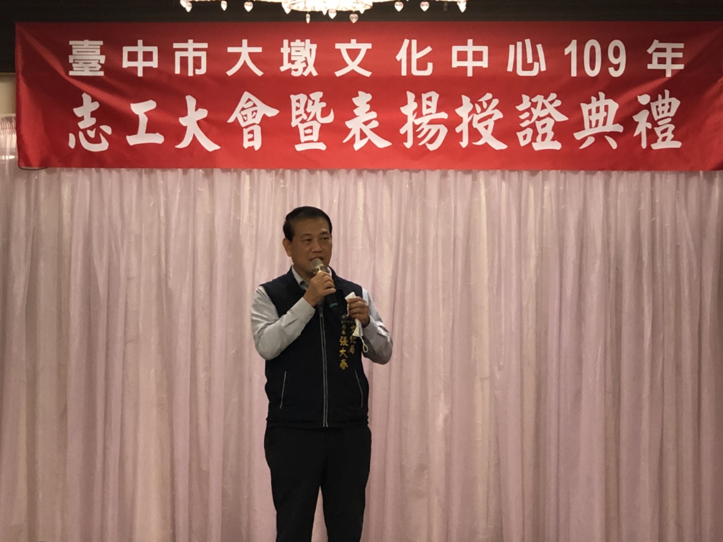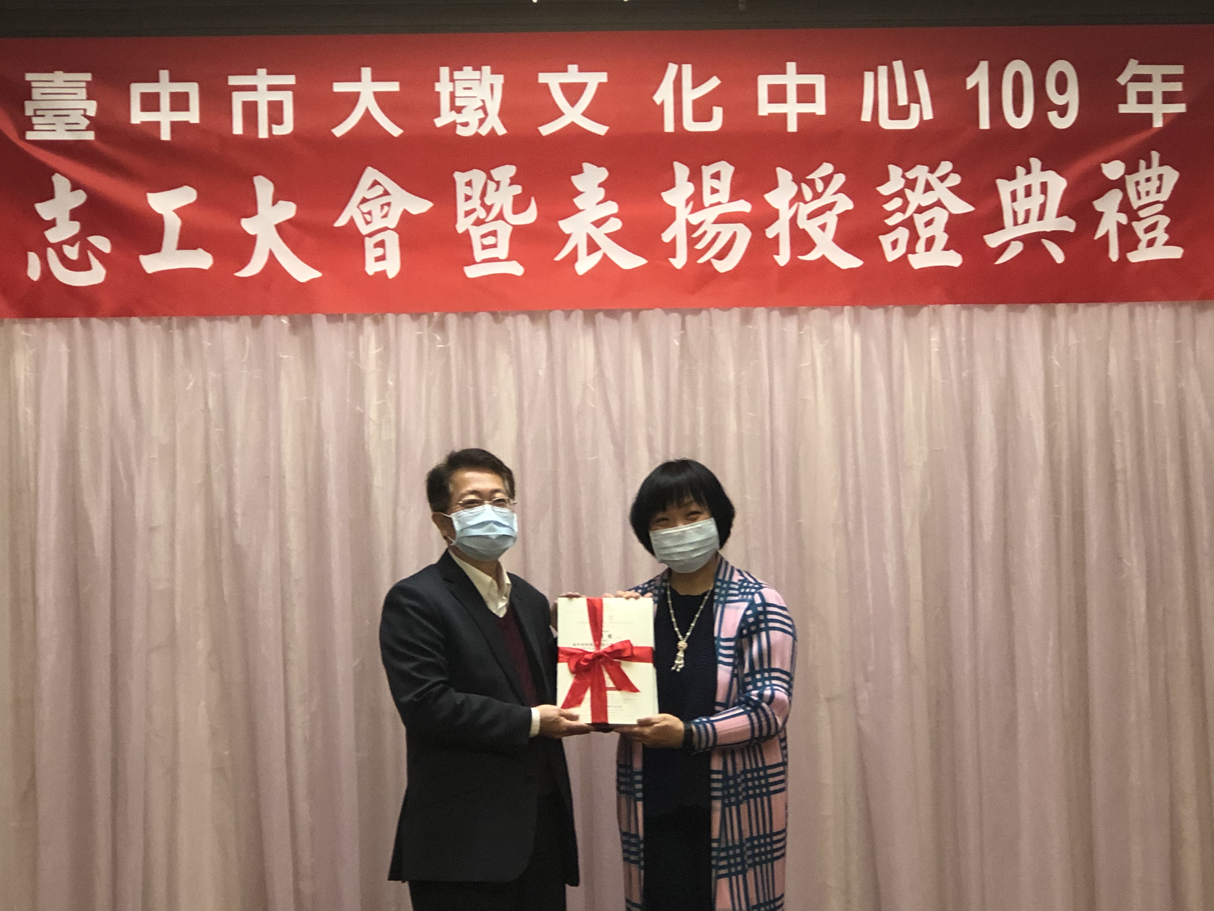 19日授證典禮由文化局長張大春致贈獎牌與獎狀,感謝志工長期對藝文活動的投入和服務