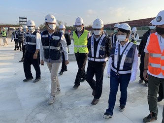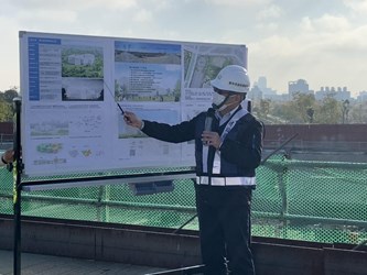 盧市長表示,感謝設計、施工團隊及第一線同仁努力克服疫情考驗、跨國協調的時差與地域限制,在缺工、缺料情況中,仍持續將工程向前推進,讓台中綠美圖逐漸嶄露耀眼光芒。