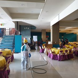 環保局指出,針對該個案足跡曾至沙鹿,沙鹿區清潔隊今日立即出動水霧式消毒車及四位清潔隊成員,以稀釋過的250公升漂白水,於金福華餐廳周邊道路進行公共環境消毒。環保局表示,防疫消毒大隊每月執行1次775處人潮聚集場所戶外公共環境消毒作業,因疫情升溫,防疫消毒大隊即日起將於每周加強執行交通場站(如台中火車站、高鐵台中站、朝馬轉運站、機場)、大型營業場所(如好市多、家樂福、新光三越、大遠百、中友等百貨業或量販店)、人潮聚集民生熱點(如逢甲夜市、一中商圈、市場)、觀光景點(如中央公園、后豐鐵馬道)等209處高風險場域防疫消毒工作,盡力防堵疫情擴散。