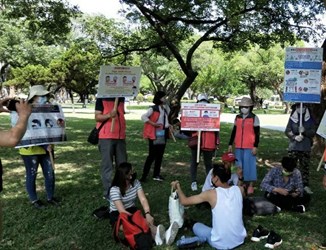 鑑於國內新冠肺炎疫情升溫,今(16)日又是穆斯林開齋節後第一個週末假日,台中市政府勞工局為加強移工防疫觀念,利用假日以簡單圖示及印有多國語言的宣導海報,持續在東協廣場、台中公園、火車站等移工較常聚集處走動式宣導,呼籲移工朋友減少外出群聚,並落實勤洗手、戴口罩、保持社交距離等防疫作為,共同守護彼此健康。