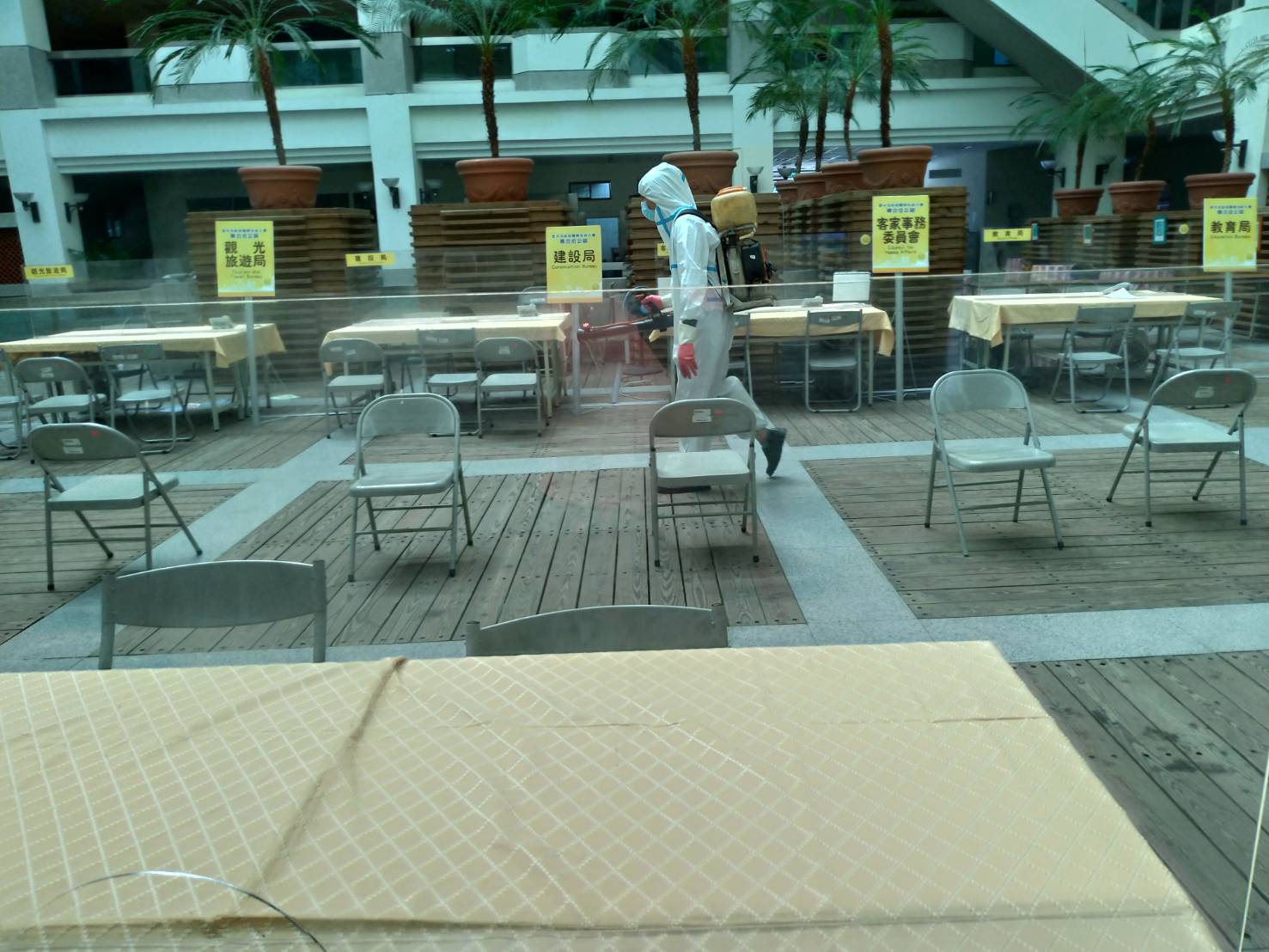 秘書處指出,今(16)日預防性針對人員較常出入與接觸的室內公共空間,包含1樓中庭聯合洽公區、各樓層走道、明梯、安全梯、廁所、地下停車場、公用會議室及集會堂等,使用有效的殺菌劑全面進行消毒、殺菌,以防止接觸傳染可能;另也將臥式空調箱內部鰭片消毒、出風口清潔,防堵病毒空氣傳播,各項消毒工作將預計執行至國內疫情趨緩為止。