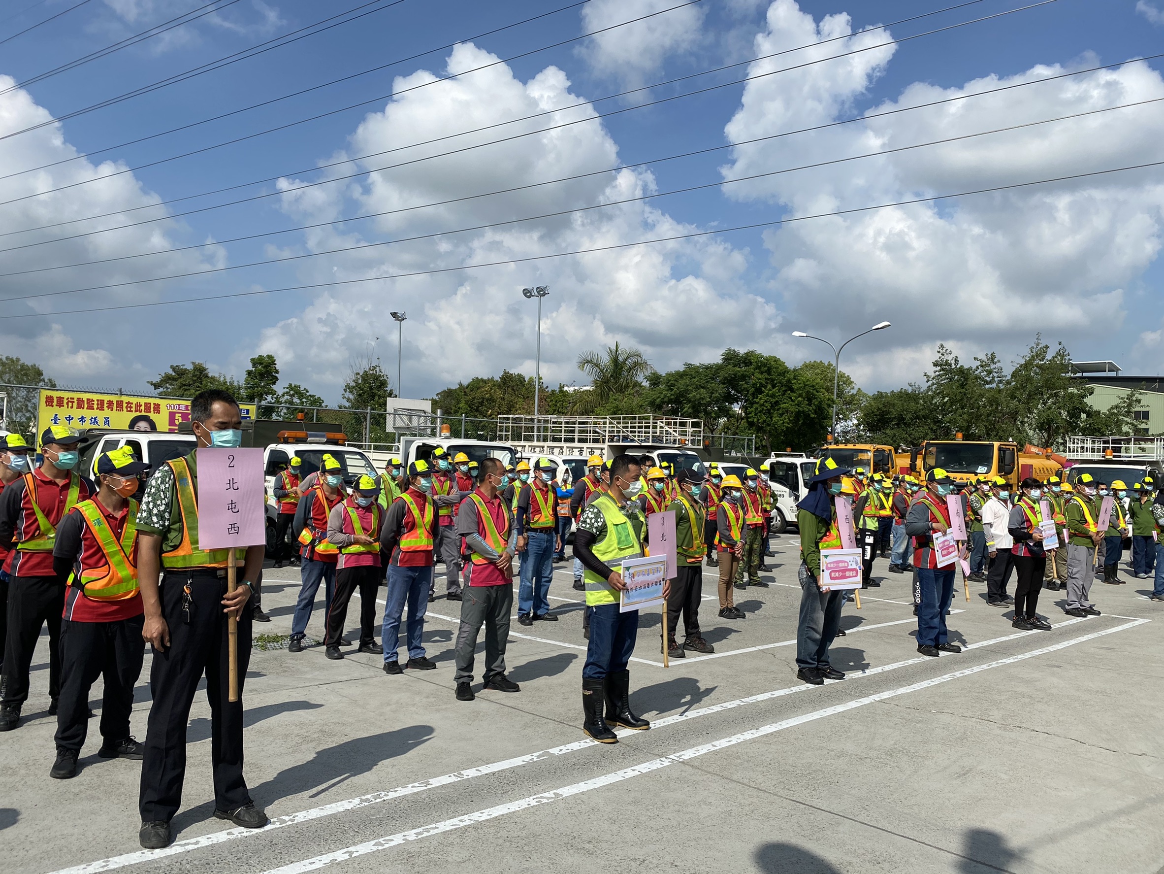 國內疫情升溫,為防止台中疫情擴散,台中市政府環保局防疫消毒大隊今(19)日再度動員11區清潔隊,總計百名消毒人力、22台背負式水霧機、12輛消毒車及3輛霧砲車,全面消毒大里區戶外公共環境。環保局長陳宏益除到場勉勵抗疫消毒作業弟兄,也再三叮嚀仔細消毒民眾易接觸地方,如候車亭座椅、扶手等,全力守護城市環境安全。