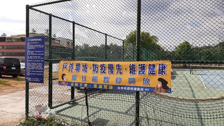 運動局表示,為預防疫情擴散,518日已公告台中市戶外運動場地,如籃球場、網球場、棒壘球場、槌球場、足球場、曲棍球、手球等球類運動場域及室外溜冰場、兒童遊具及體健設施等設施暫停使用,並持續加強消毒作業。