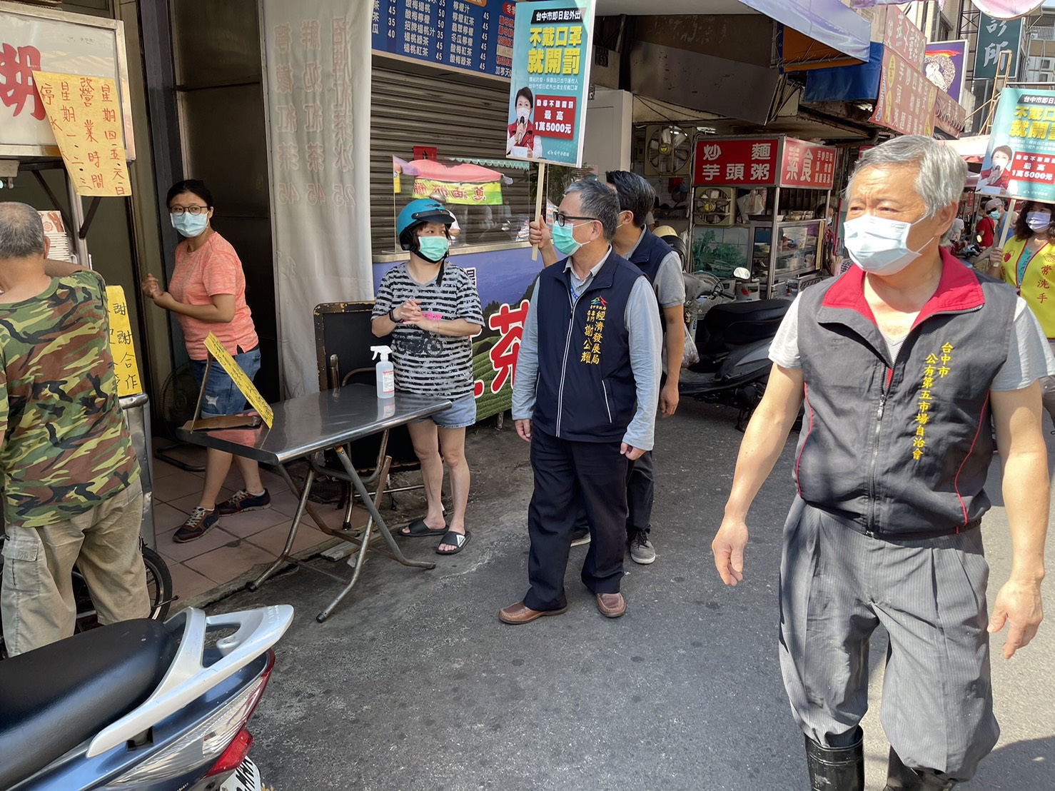 經發局進一步表示,經發局謝專委今日上午帶隊到第五公有零售市場及周邊自立街、大明街、自治街、樂群街等沿街店家稽查,發現有5位民眾未確實將口罩戴好,當場立即勸導,民眾也配合拉至鼻樑上方,整個稽查過程未發現完全未佩戴口罩者;此外,林專委也率隊至逢甲商圈及周邊店家進行稽查及宣導,總計宣導7家店家,皆已配合暫停內用,並配合外帶實聯制規定,於入口設置明顯店家QR Code。