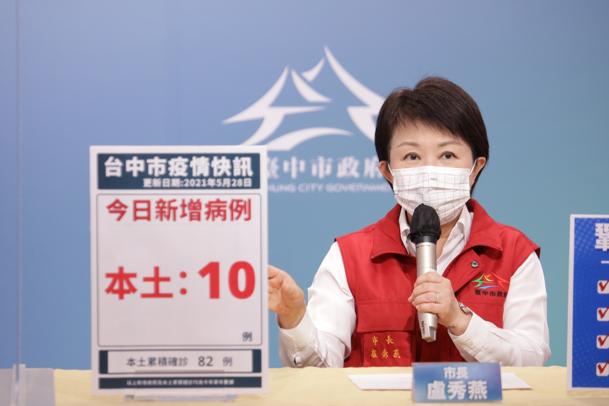 衛生局長曾梓展針對今日確診案例說明,案6996為太平區53歲某科技公司技術員,為昨日公布案6349妻子,無相關症狀,5月16日曾與丈夫至桃園,26日因丈夫確診被匡列為接觸者安排採檢,27日確診。