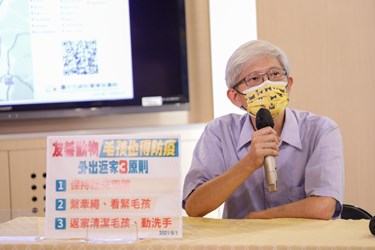 社團法人台中市獸醫師公會理事長劉彥杰強調,市府所選用的消毒藥劑,均依照正確比例稀釋及使用,對毛小孩不會造成影響,請民眾放心。他也分享「友善動物 毛孩也得防疫」外出返家3原則,包含保持社交距離、繫牽繩並看緊毛孩、返家清潔毛孩與勤洗手,兼顧人類與毛孩健康安全。