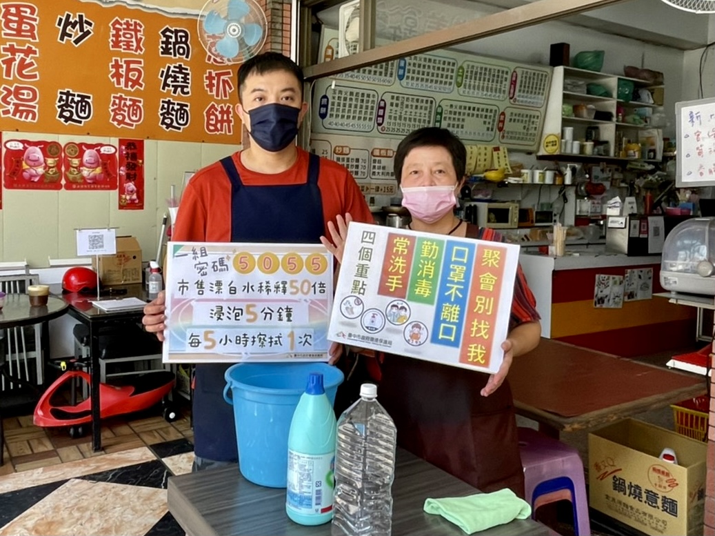 全台本土疫情未歇,防疫成為必修的重要課題。台中市政府環保局為確保市民享有安全、便利的購物環境,積極推廣「5055消毒法」,優先從環境友善店家開始實施,搭配自製簡易消毒水,定時進行工作台、冰箱把手、貨架及地板等公共區域清潔消毒,減少員工及客人感染病毒風險。