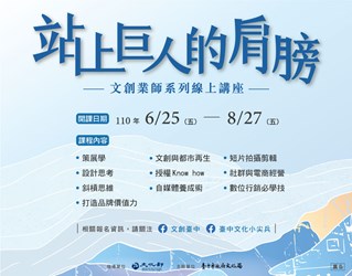 站上巨人肩膀 中市文創業師線上講座6/25起登場