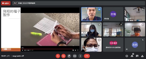 教育局表示,此次線上會議不僅向輔導團正副召集校長、課程督學宣達學期任務進度,並由自然科學領域國小輔導小組的西區大同國小陳映均老師、南區樹義國小魏秀玲老師帶來線上教學與實驗課程小撇步,更由大安區永安國小林鴻仁老師帶領校長一同線上做實驗,製作「紙片種子」模擬種子的飛翔,示範實驗課程也能線上做。