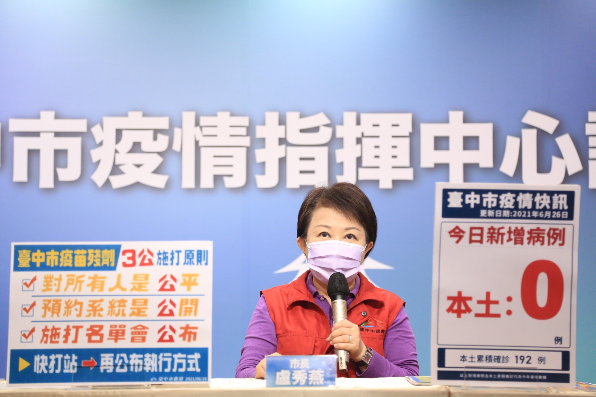 台中市前兩日開放77歲至79歲長輩施打疫苗,市長盧秀燕今(26)日再宣布,6月30日上午將開放75歲至76歲長輩、原住民65歲以上長輩接種疫苗,預計下周一、二由里鄰長發放施打通知單;另外,配合中央指示殘劑開放施打,她也提出台中市殘劑施打「三公原則」,即施打公平、預約公開、名單公布,請各醫療院所、衛生所及快打站遵循此原則執行。