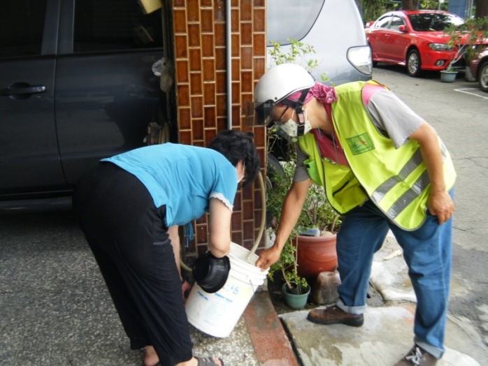 環保志工楊小姐表示,家裡有兩個小朋友因防疫警戒停止到校上課待在家中,每天喊無聊。趁著沒下雨的時候,乾脆全家動員一起檢查、清除家裡的廢棄積水容器,一個上午清了花盆底盤、帆布凹槽、魚缸、金爐、臉盆等容器,且搭配環保局推廣的「5055消毒法」,跟孩子把家裡重新大掃除及消毒一次,也讓孩子「從做中學」,落實環境教育。楊小姐笑稱,養2個孩子已經吃不消了,沒有心力再幫蚊子養小孩。