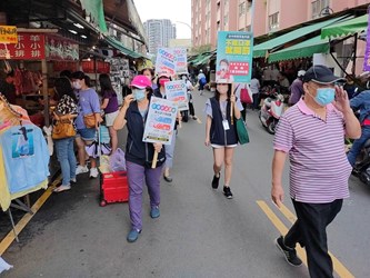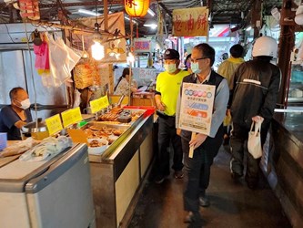 國內新冠肺炎疫情仍嚴峻,考量近日傳統市場出現採買人潮,台中市政府經發局自6月29日起連四天,由副局長李逸安、主任秘書倪世齡、專門委員林敏棋及謝公耀,分別帶隊至水湳、南屯、向上及水崛頭等傳統市場,加強宣導餐飲禁內用、市場分流運動、落實實名(聯)制、環境清潔消毒、維持社交距離等措施;稽查時攤商及消費者口罩均戴好戴滿,顯見民眾高度防疫意識。