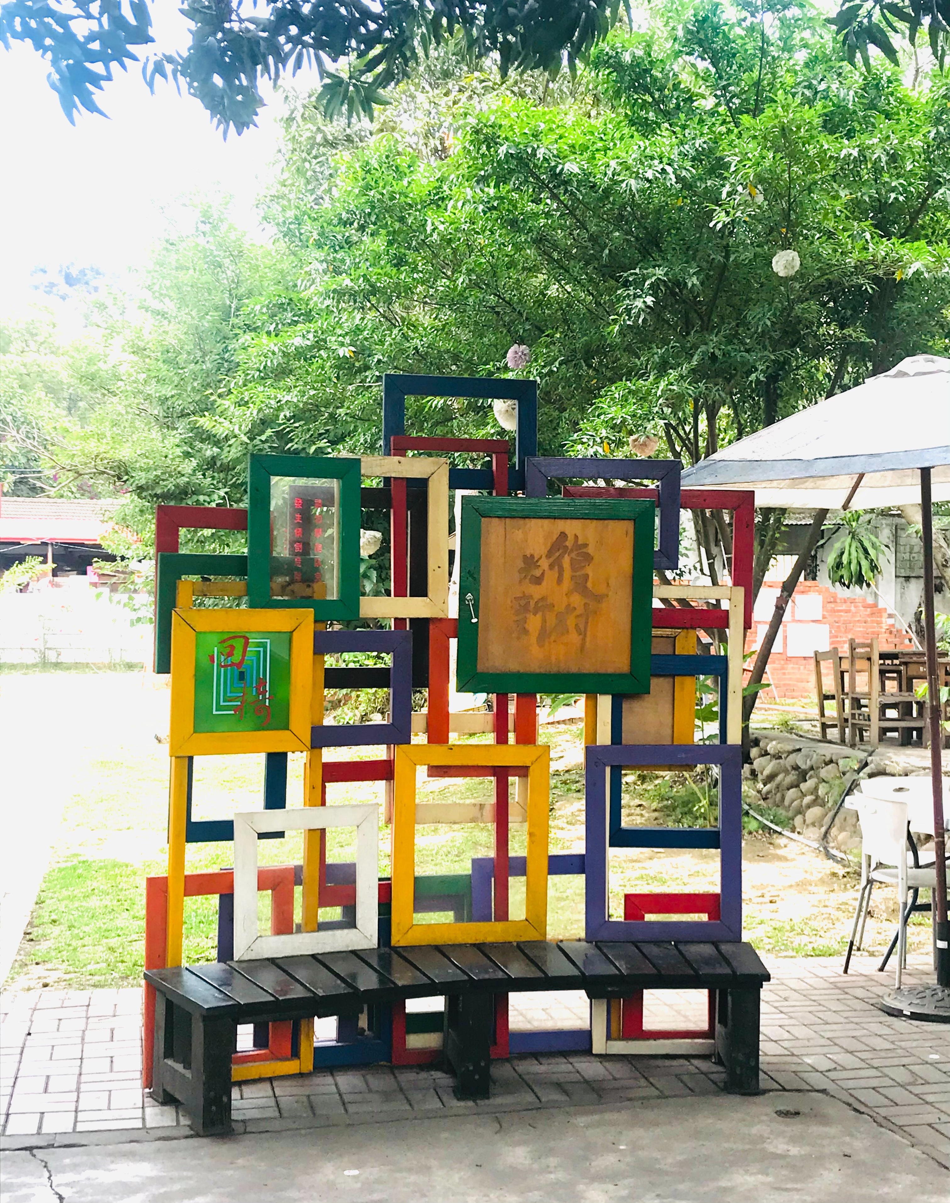 勞工局長張大春表示,光復新村青創基地一直以來扮演台中青年創業與創意發揮平台的角色,108年明台高中學生參賽團隊設計裝置藝術「回椅」,獲選即設置於青創基地內,已成為知名的拍照景點,以相框代表著舊回憶與椅子結合的概念,讓多元藝術及新概念在此揮灑。