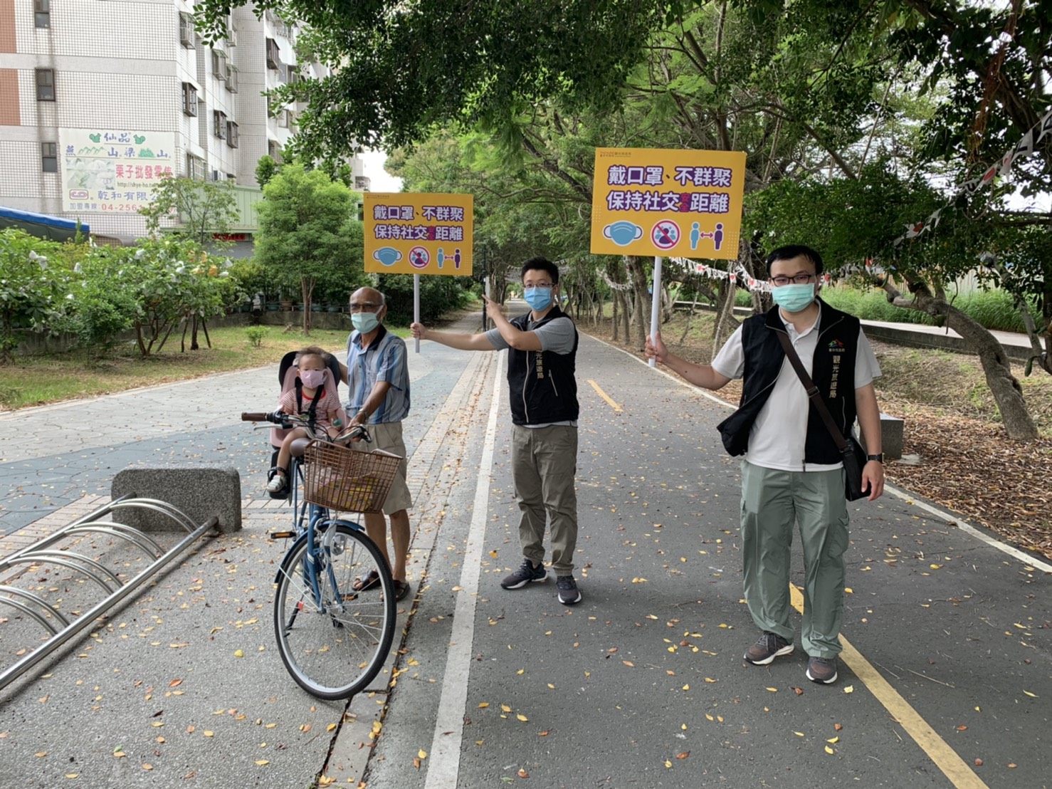 觀旅局表示,為維護市民健康安全,確保場域具備完善防疫措施,一早出動「台中景點疏導隊」手持告示牌呼籲大家應保持安全社交距離,戴口罩、不群聚,景點視察結果狀況皆良好,早上計宣導143人次,遊客均遵守防疫規範、無群聚現象,感謝市民配合齊心防疫。