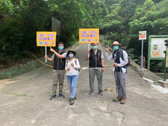 近日全台疫情有逐緩趨勢,台中市政府觀光旅遊局配合疫情三級警戒延長防疫指引,今(13)日起有限度開放部分觀光場域,並於開放首日出動「台中景點疏導隊」視察景點狀況,針對東后豐自行車道、潭雅神綠園道、新田登山步道、大甲鐵砧山雕塑公園及大坑9號、9-1號、10號步道周邊等加強巡查,宣導民眾遵守防疫措施,維護自身健康。