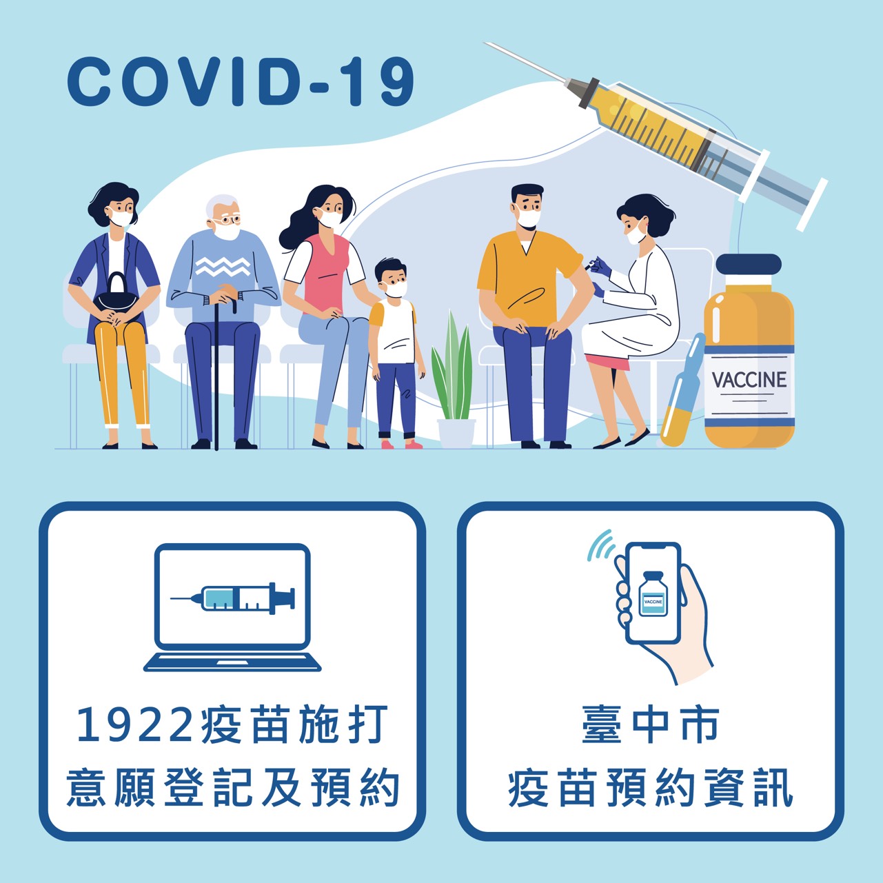 而為方便服務櫃台同仁迅速提供疫苗預約平台連結說明,民政局即時整合升級「台中戶政ONLINE」官方帳號防疫相關資訊,除原先即有的「簡訊實聯制QR-CDODE掃描」、「台中市防疫專區」及「居家檢疫線上申請」連結資訊,此次新增「公費疫苗預約登記」查詢功能,並提供「1922疫苗施打意願登記及預約」及「台中市疫苗預約資訊」網址連結,將分散在不同網站的訊息統整,協助民眾快速查找,輕鬆掌握防疫資訊。