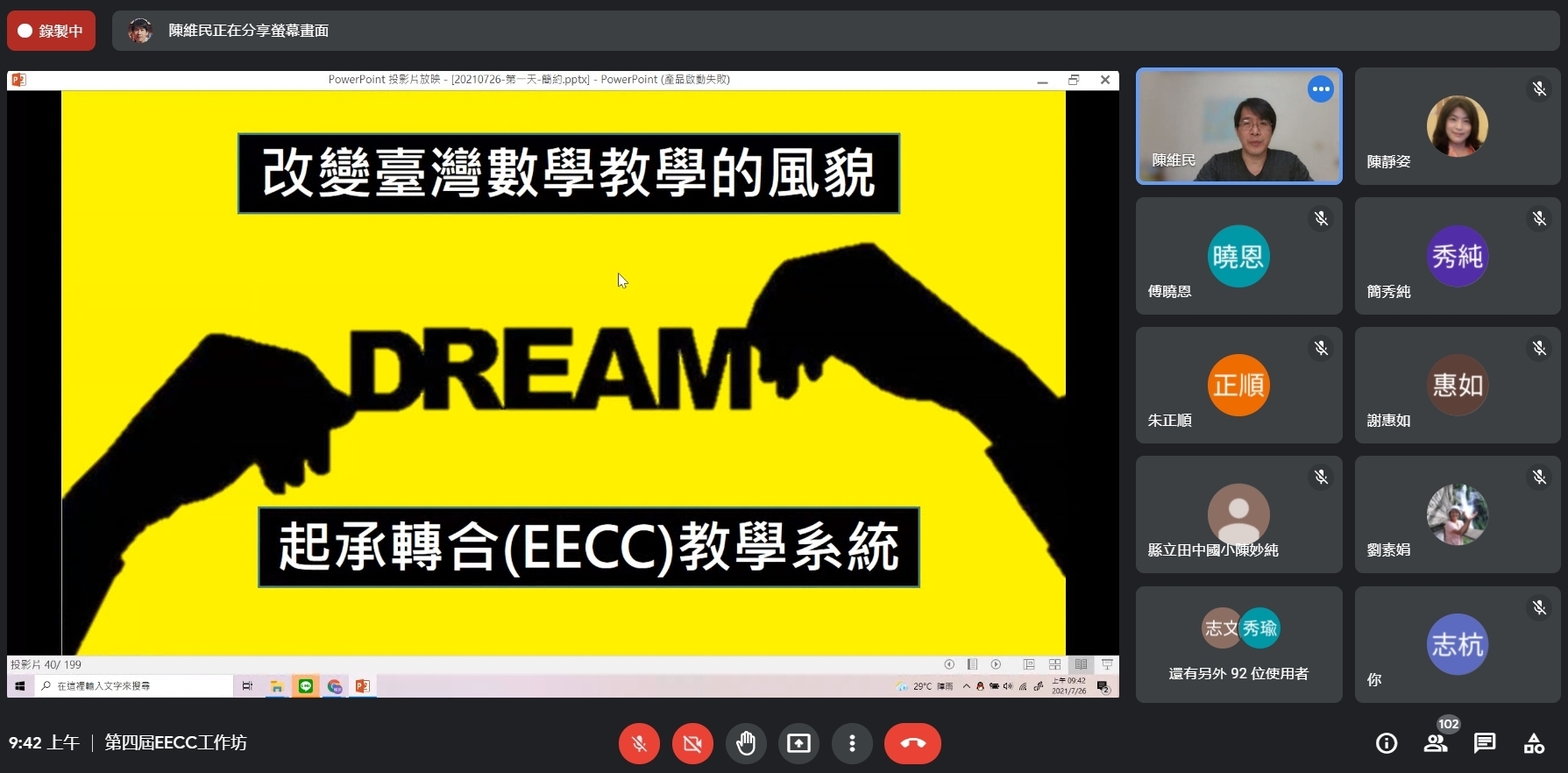 台中市政府教育局日前舉辦第四屆「數學起承轉合(EECC)教學系統及課程模組」工作坊,因應疫情改為線上辦理,吸引百餘位師長參加,此次由清水國小教師陳維民創立的《國小數學起承轉合教學系統》,把作文「起、承、轉、合」思維架構融入數學教育,啟動孩子系統性學習思維,配合計畫實際入班參與,希望吹起台中市數學教育進化風潮,加速教學的轉化與發展。