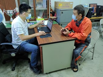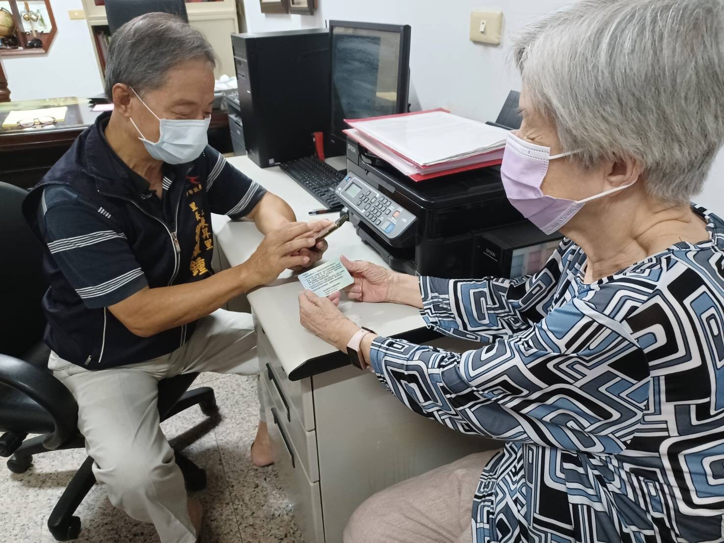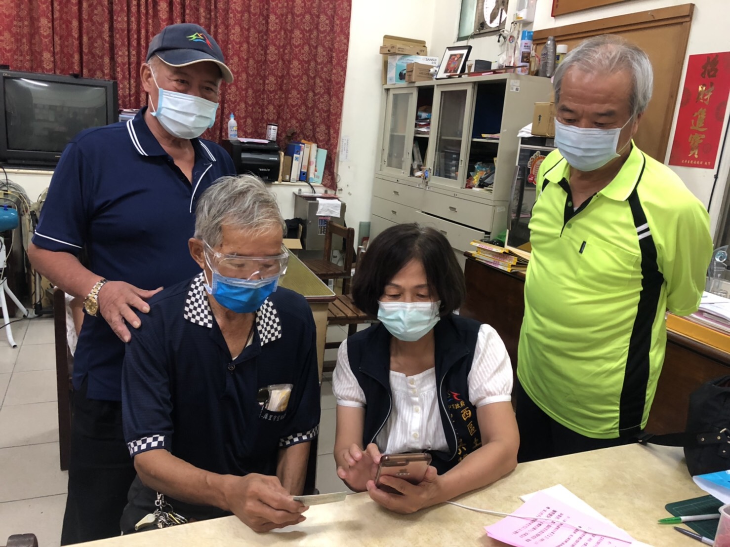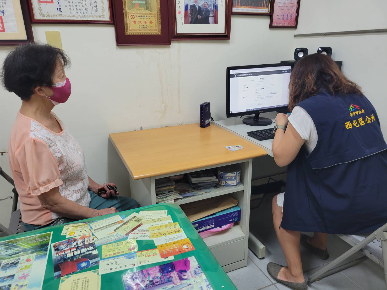 中市里幹事於里辦公室處協助里民進行疫苗意願及預約登記