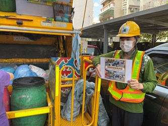 你保持「愛的社交距離」了嗎? 中市清潔隊員戴特製口罩勤宣導
