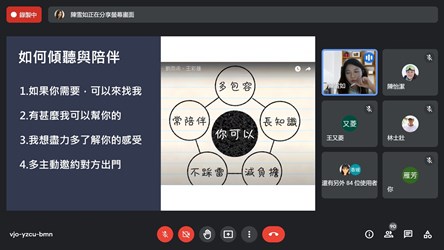 教育局指出,因應防疫並為讓更多教師及家長參與,此次講座採用線上教學方式,由兩位專家學者分別於線上與教師、家長對話,分享「青春不是突然就叛逆」、「大人先安定,與孩子彼此同理建立更穩固緊密的親子關係」的主題,帶領教師和家長認識情緒及如何管理情緒,並以溫和堅定的對話方式,經營親師生的溝通管道,引導孩子用適當方式表達及處理情緒,朝向正向思維。(8/26*7)*教育局