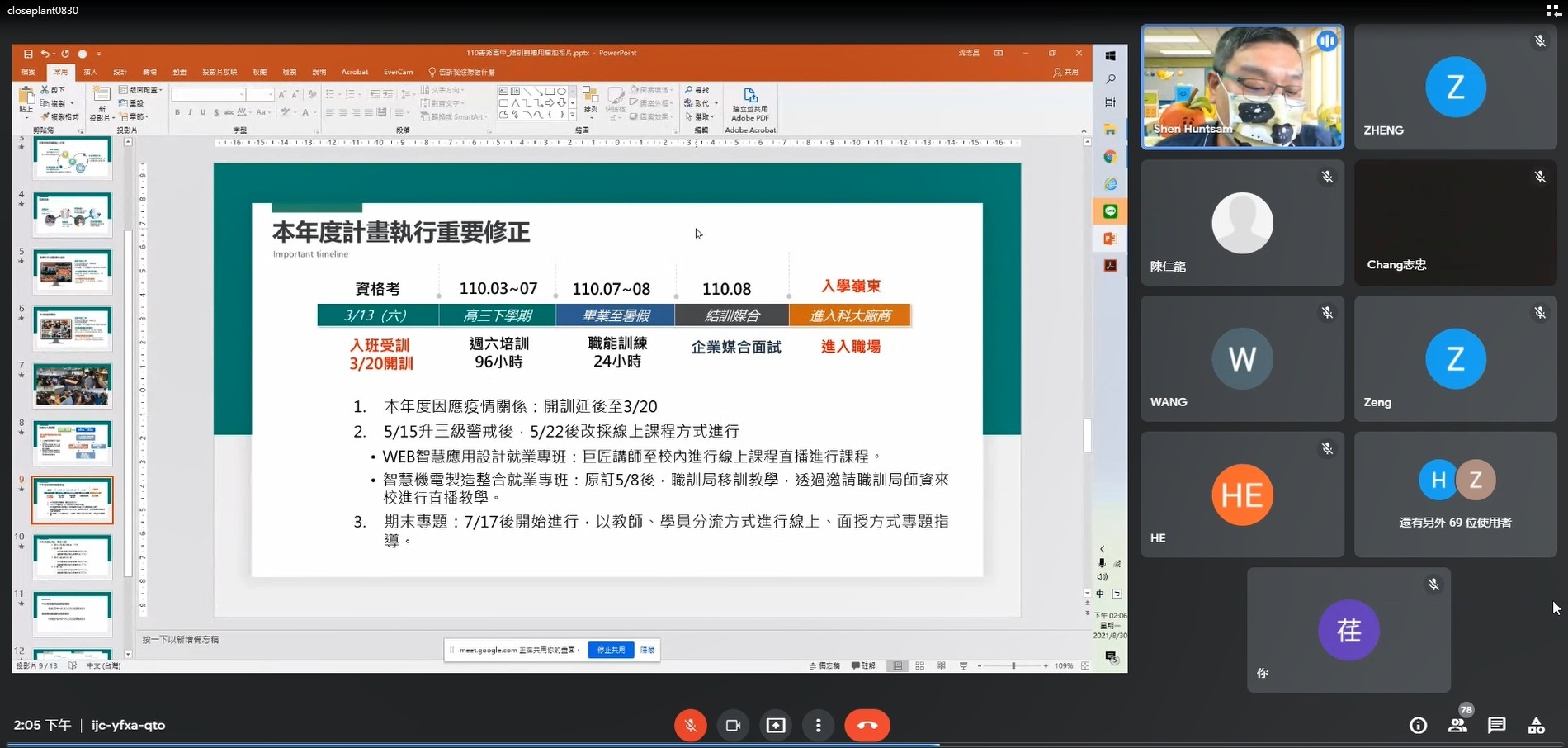 今日結訓典禮因應疫情採線上辦理,參與廠商如惠特科技、車王電子、橋椿金屬、采威國際等提供超過60個職缺,期勉學生在工作場域有效發揮並兼顧課業精進,累積業界經驗與校內所學,成為職場中的明日之星。(8/30*10)*教育局