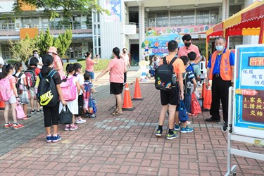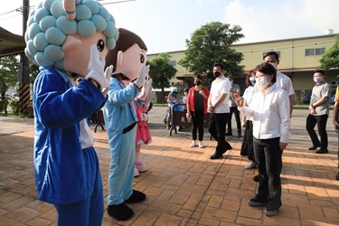 盧市長說,為緩和學生開學的緊張情緒,學校更準備各種精心活動及歡迎儀式,東寶國小家長會甚至扮起大型玩偶,讓孩子到校就有好心情,學校將持續做好相關防疫措施,請家長放心。