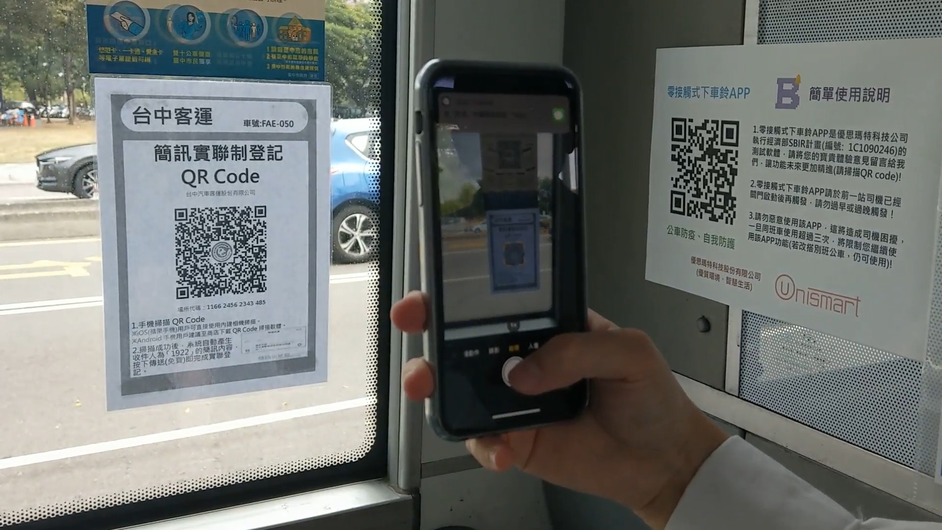 交通局進一步說明,為提供民眾安心的乘車環境,公車仍持續在收班、發車前進行全車消毒作業,每班次抵達終點站後也將針對乘客較常接觸的拉環、把手、下車鈴、公車驗票機等設備加強清消,並視情形加密消毒頻率,公車上也加裝酒精噴頭,提供民眾消毒手部,守護民眾健康。也請民眾配合中央防疫政策,確實使用簡訊實聯制,每輛公車車門及車窗等處已張貼多張QR Code供民眾就近掃描,車內也張貼使用說明;對於無法使用簡訊實聯制者,車輛上備有紙本實聯制小卡可供乘客填寫。