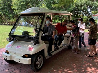 白區長並表示,為了提供入園接駁服務,他與5名同仁前天就到場加緊練習高爾夫球車的操作,全力提供民眾優質的搭乘感受與服務。此外,大肚公所也替兩部高爾夫球車命名「健康號」及「長壽號」,希望前來接種疫苗的長輩都能健康、長壽。