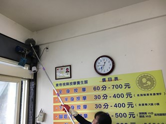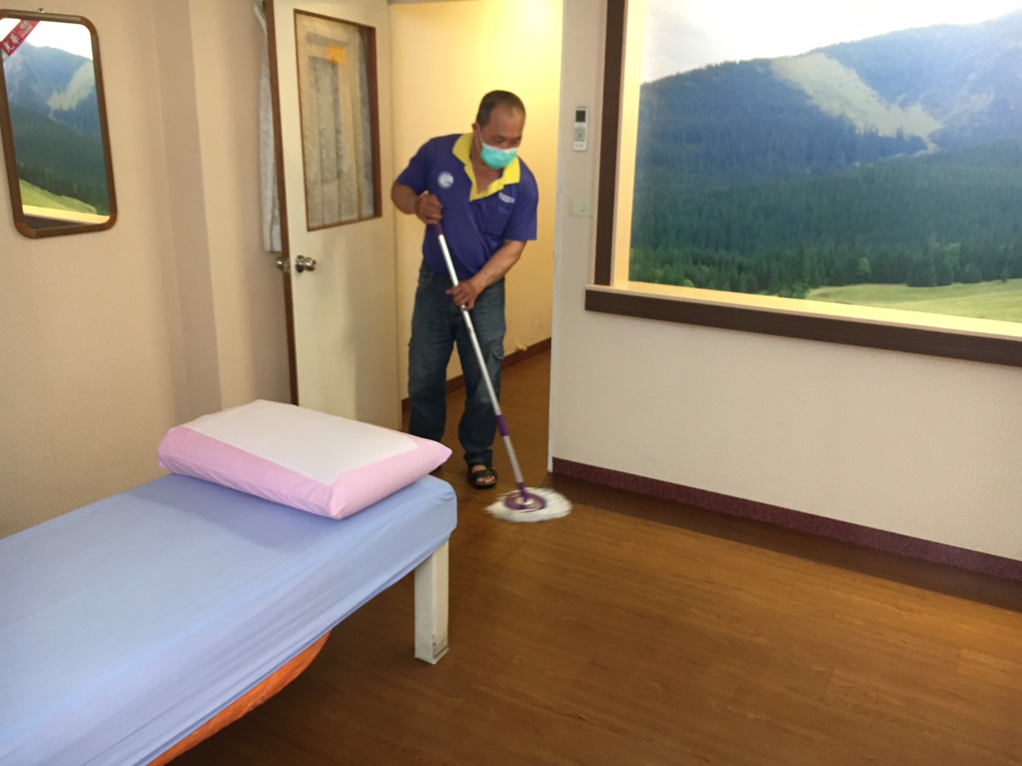按摩師蔡先生指出,自開設視障按摩院以來,認真努力經營,顧客量穩定成長,但因時間及視力因素無法維護按摩院環境清潔,勞工局提供專業清潔人員維持環境,大幅改善按摩院衛生及舒適度,提高顧客回流率,這次停業期間也申請紓困工作補貼和復業前環境清潔工作,感謝勞工局的協助與輔導。