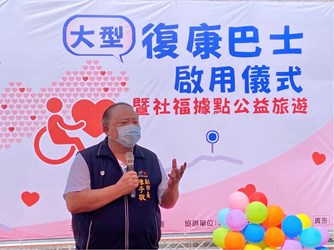 台中市原有3輛大型復康巴士和1輛中型復康巴士,市府向中央爭取補助493萬元、自籌600萬元,合計1093多萬元添購第4輛大型復康巴士,今(23)日舉行啟用儀式,首發車將帶身障朋友參訪社福據點,副市長陳子敬期望復康巴士提升身障朋友的生活便利性,也勉勵身障朋友多走出家門,參與各種活動,市府會持續充實身心障礙者交通接送服務能量。